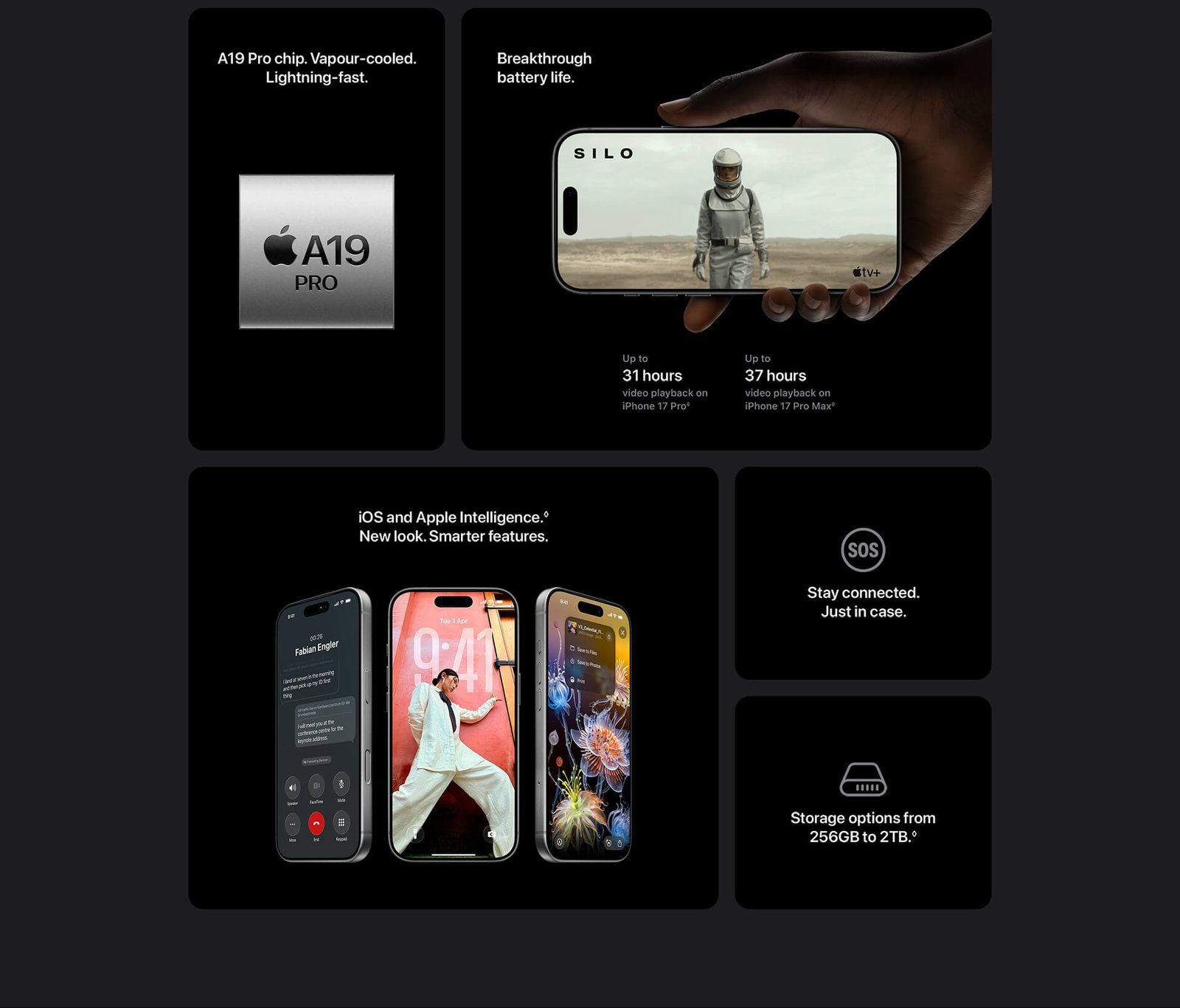 - A19 PRO CHIP. VAPOUR-COOLED. LIGHTNING-FAST. : A19 Pro is the most powerful iPhone chip yet, delivering up to 40% better sustained performance.