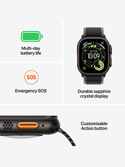 • ²When angled away from the user as compared with Apple Watch Ultra or Ultra 2.