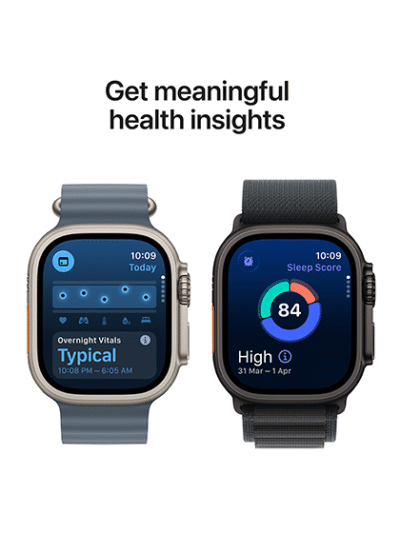 • INVALUABLE HEALTH INSIGHTS — Get notified of an irregular heart rhythm,6 or an unusually high or low heart rate. Track your sleep score and your daily health status with the Vitals app7 and take readings of your blood oxygen.8